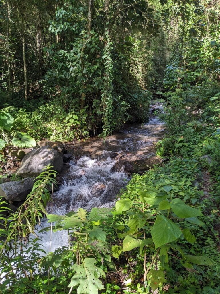 The trail snakes up through the rainforests of one of the local mountains, following a stream that is tapped as a water source. There are multiple footbridge crossings, an opportunity to see rare quetzals, a 1000-year-old tree, and a hidden waterfall!