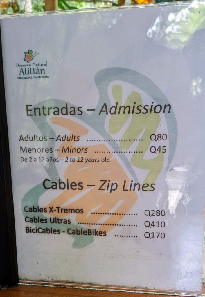 And paid the 80 quetzales/$10.26 USD per person entrance fee to get in. You could do zip lining if you wanted, for an additional fee.
