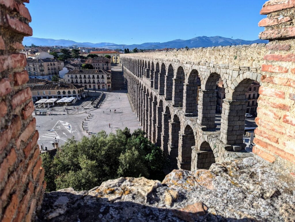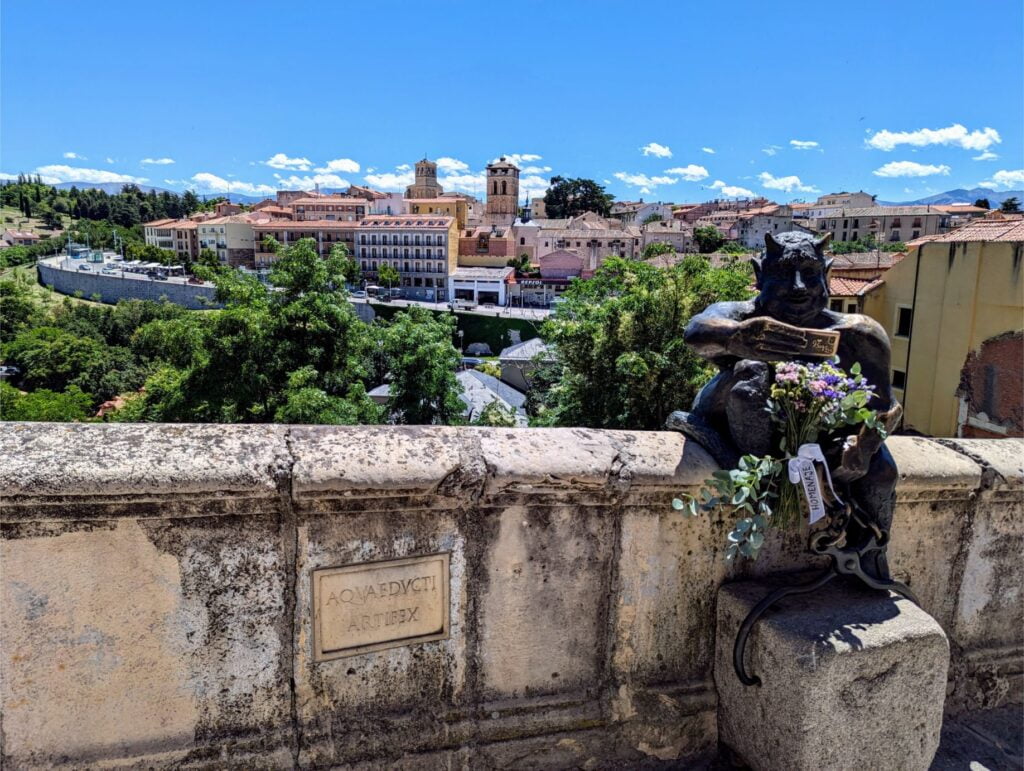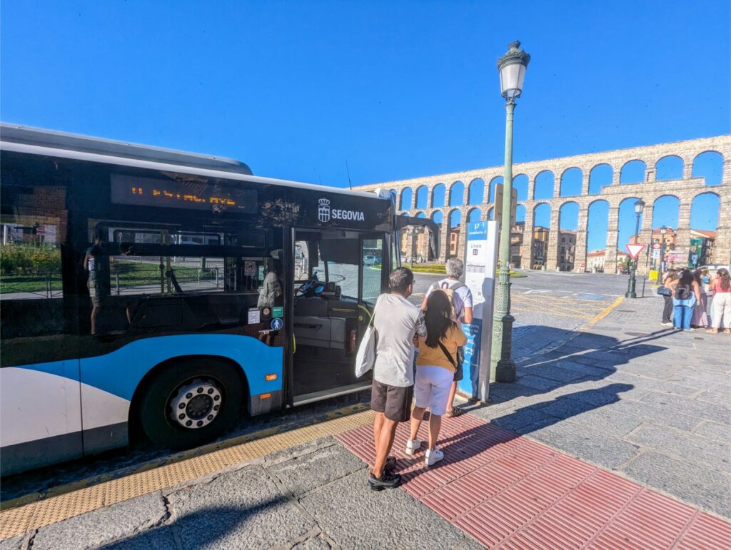 We just looked for BUS #11 (Acueducto) waiting outside the station, paid the €2.25 ($2.43 USD) fare (per person), and were dropped off right next to the Roman aqueduct in the historic center where everything is accessible on foot.