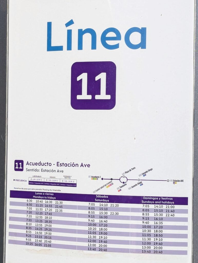 To return to the train station later in the day, we just got on BUS #11 (Estacion Ave) in that same location.