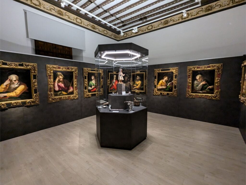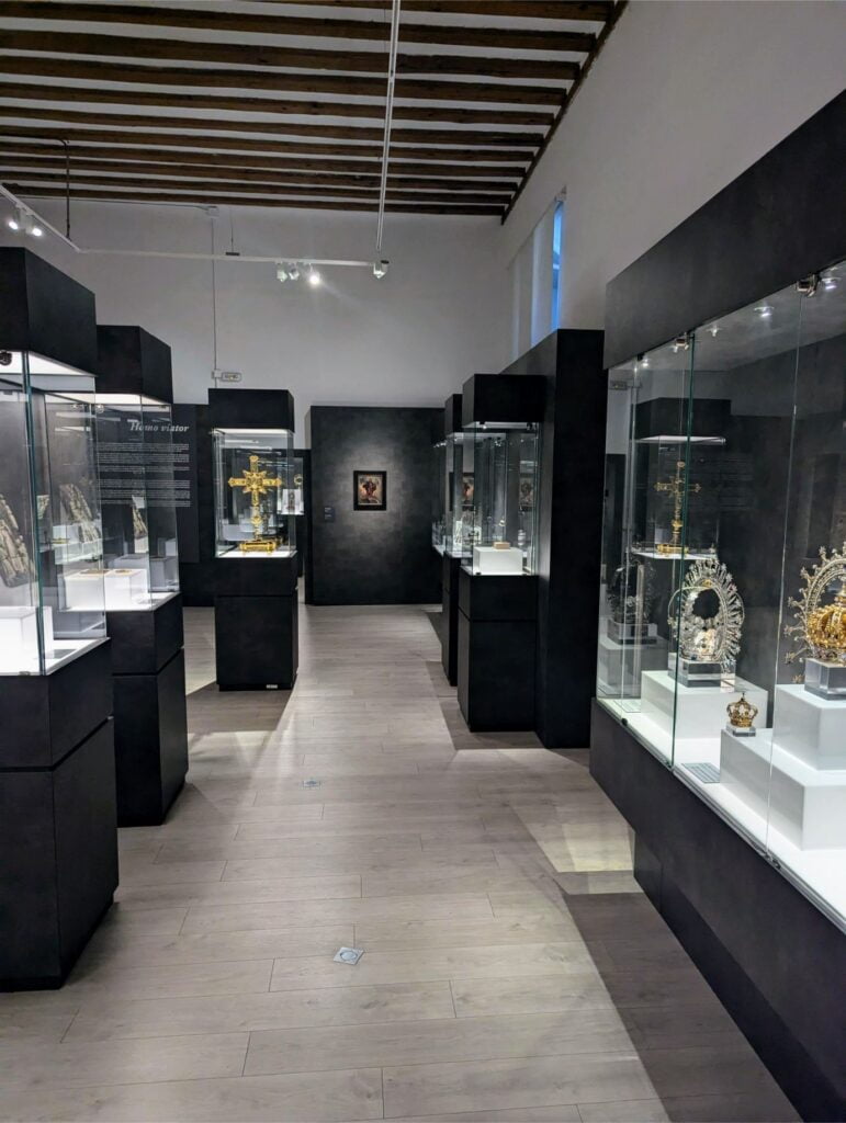 The palace features two main areas: exhibition rooms showcasing liturgical objects, sculpture, painting, textiles, and other art pieces; and the noble rooms, which were used for representation and living quarters for the bishops until recent times.