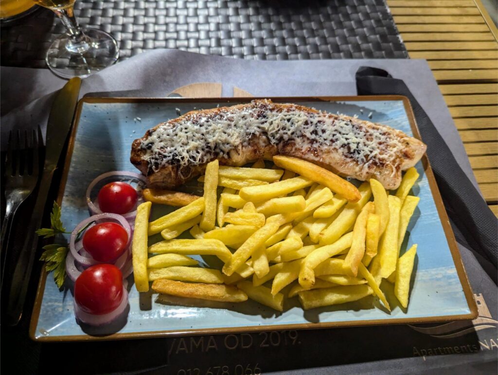 Our total bill, including a massive shared appetizer for two, the above entrees, 500 mL domestic beer, water, and tip, was 4,000 RSD ($37.56 USD).