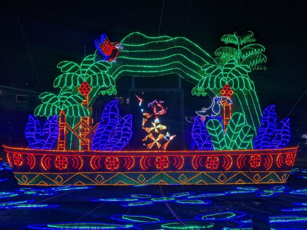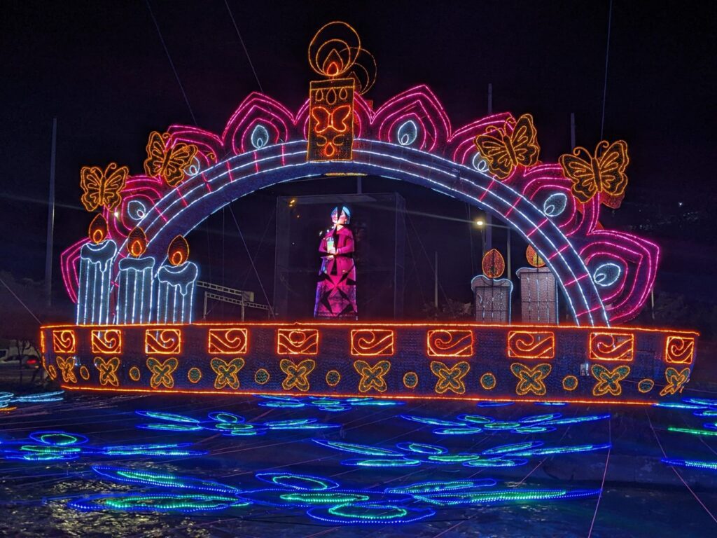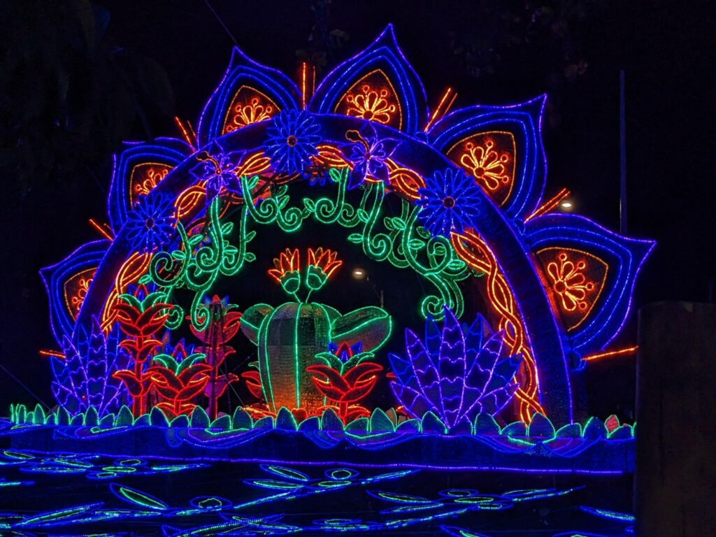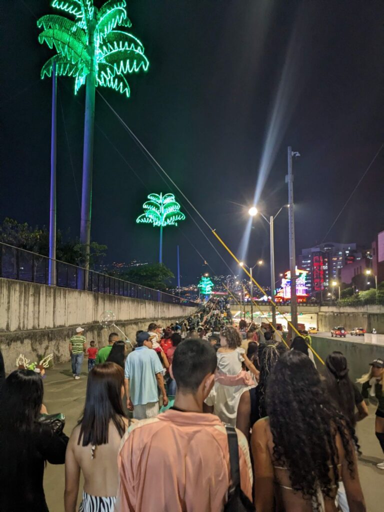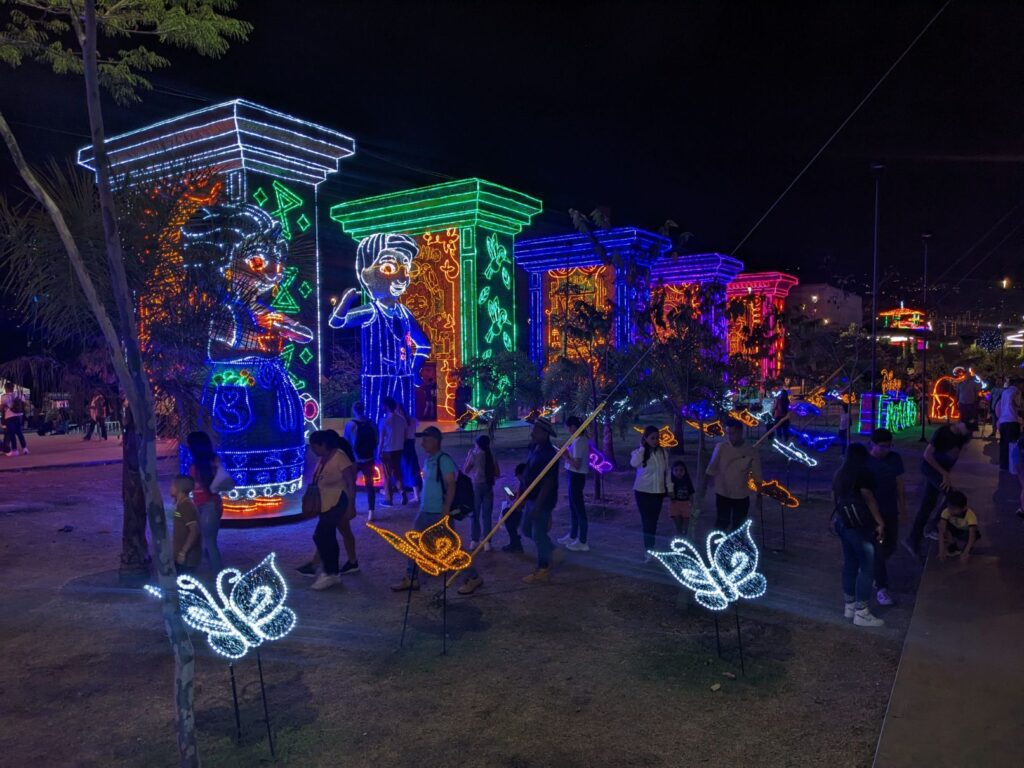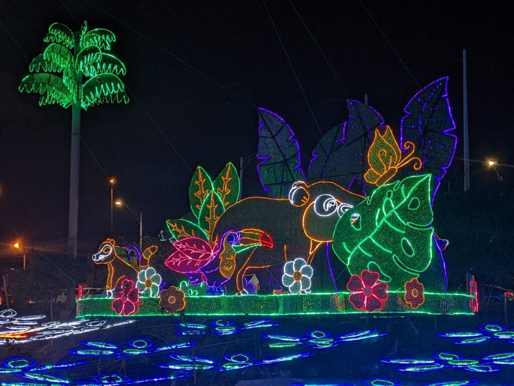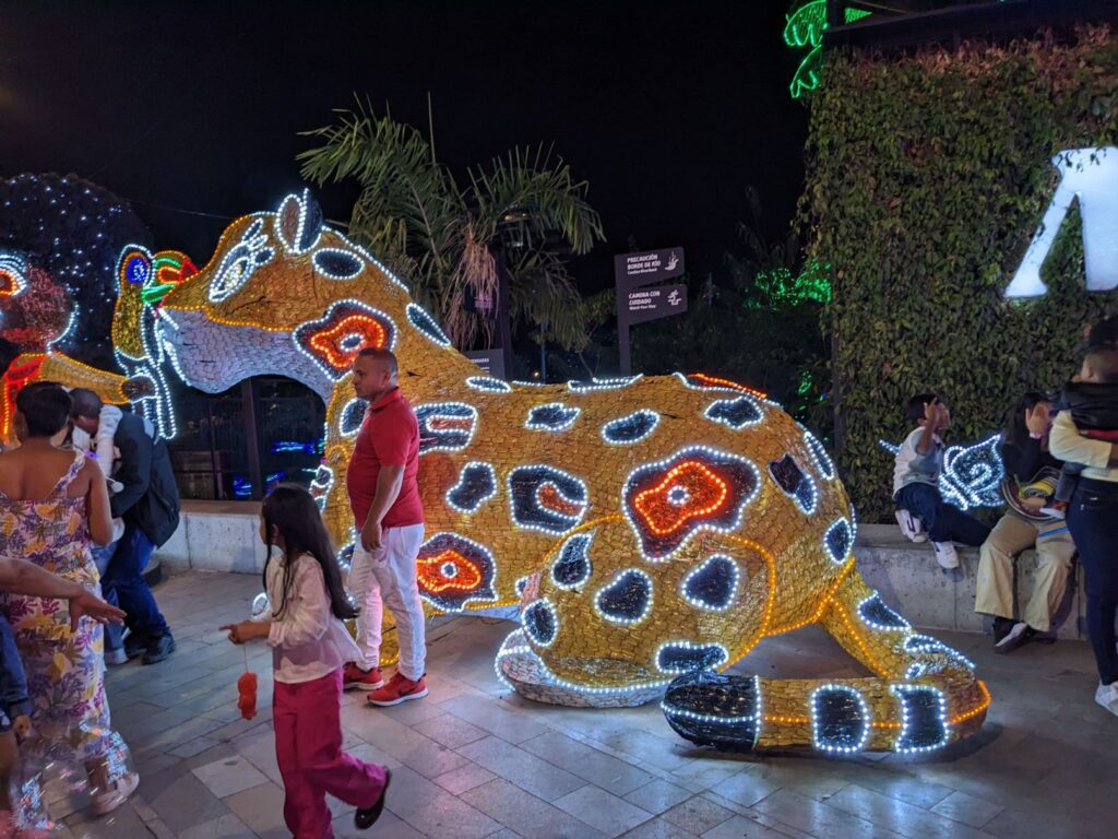 So we made a night of the Christmas lights walk! Apparently, Medellin Colombia has a financial relationship with the Disney corporation and agreed that the theme of the Christmas lights walk for 2022 would be from the movie Encanto. They even included holographic animations of characters from the movie!