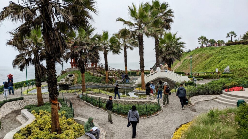 The Pacific coast cliff of Miraflores is lined with exceptionally landscaped parks and bike/foot paths that form a continuous chain leading north and south to other (safe) districts in Lima.