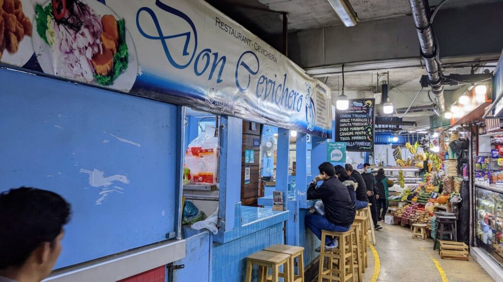 Don Cevichero is, as the name implies a ceviche and seafood specialty food stall. Although not the cheapest food in the mercado area, it is a crazy bargain for seafood of this quality. The ceviche is considered by many to be among the best in Lima.