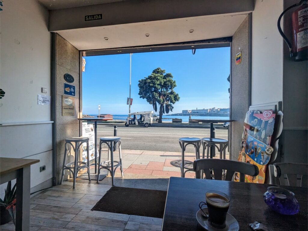 Instead, we walked to a nearby cafe next to Playa de Raizor to soak up caffeine, as well as the views, for an hour or so.