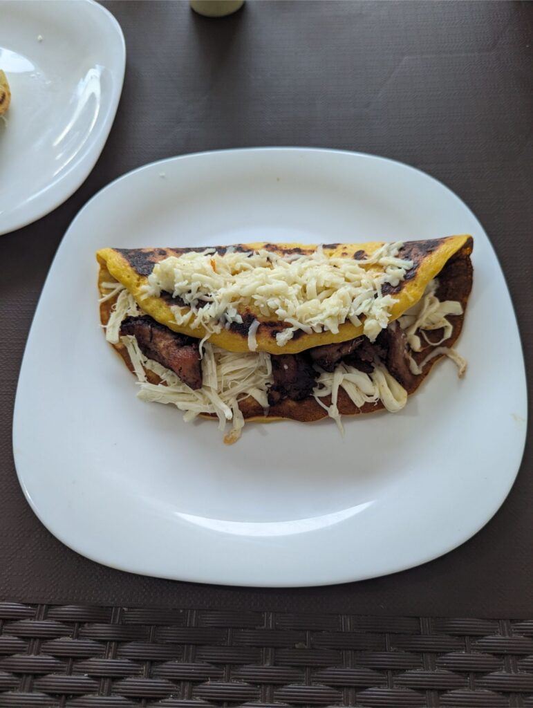 Eparepa Sabor a Venezuela (Google Maps) is the only Venezuelan restaurant in Oaxaca. We discovered it when searching for a place that served arepas for our friends to try, and boy did it deliver! Not only are the arepas out of this world, but so are the patacone sandwiches, and cachapas. And as a side perk, it was a short walk from our apartment!