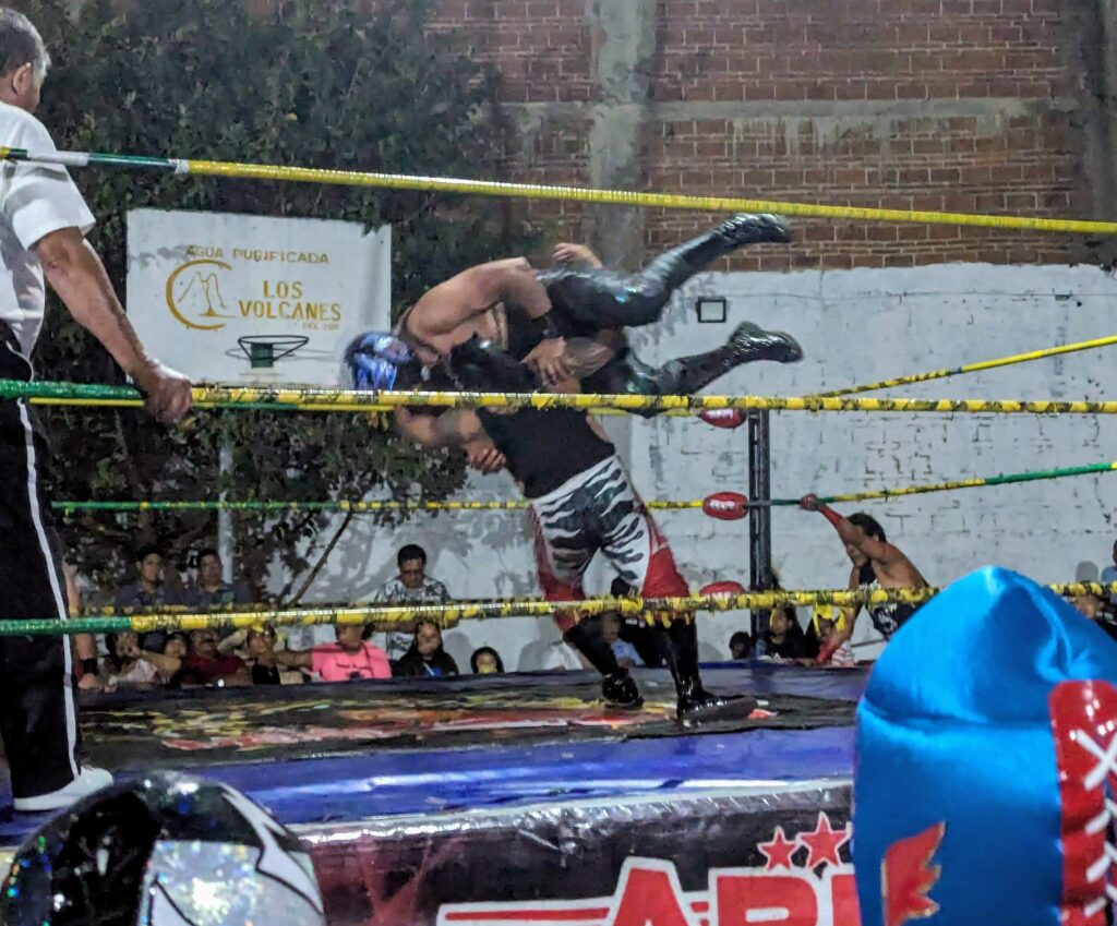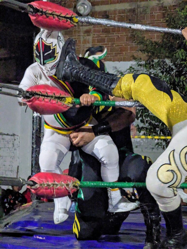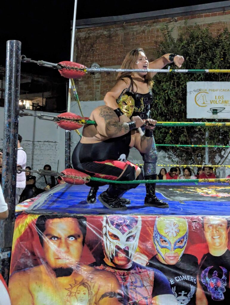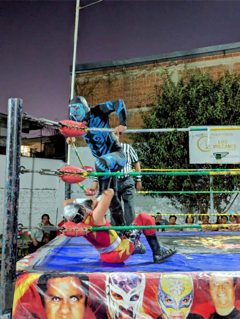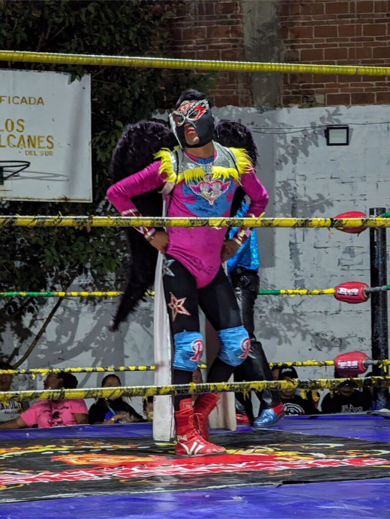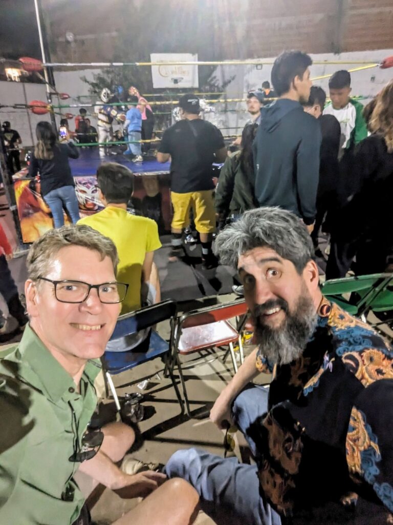 I say “strategically” because lucha libre wrestling has a reputation for front-row spectators “getting involved”. So we thought having a row of human shields between us and the action would be prudent.