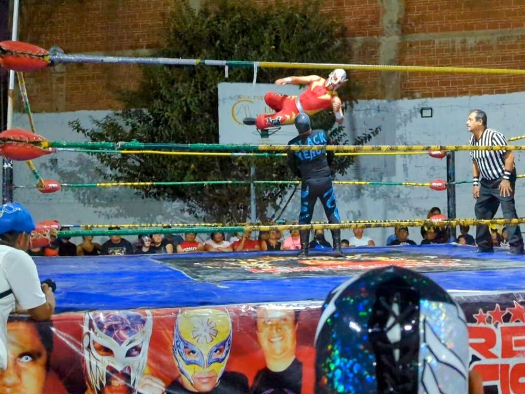 When you wander the streets of Oaxaca, you will eventually notice the posters advertising Lucha Libre Wrestling events that happen in town. There are several pro wrestling schools here, and they take turns performing for local audiences.