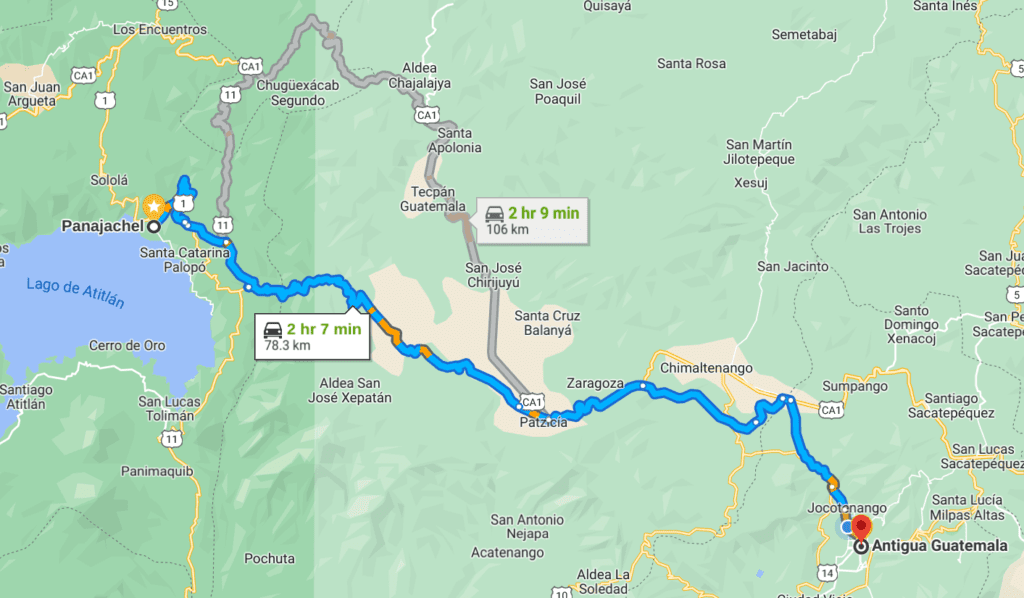 Unfortunately, landslides blocked the preferred, more direct route to Antigua Guatemala, so we had to take a longer route.